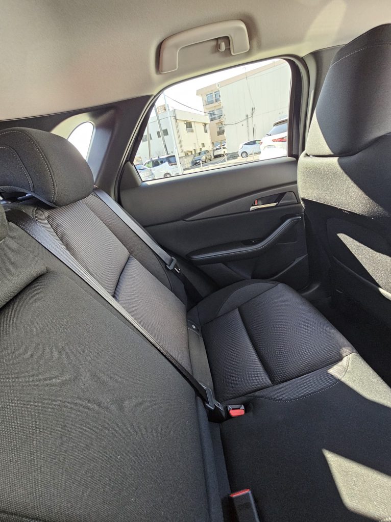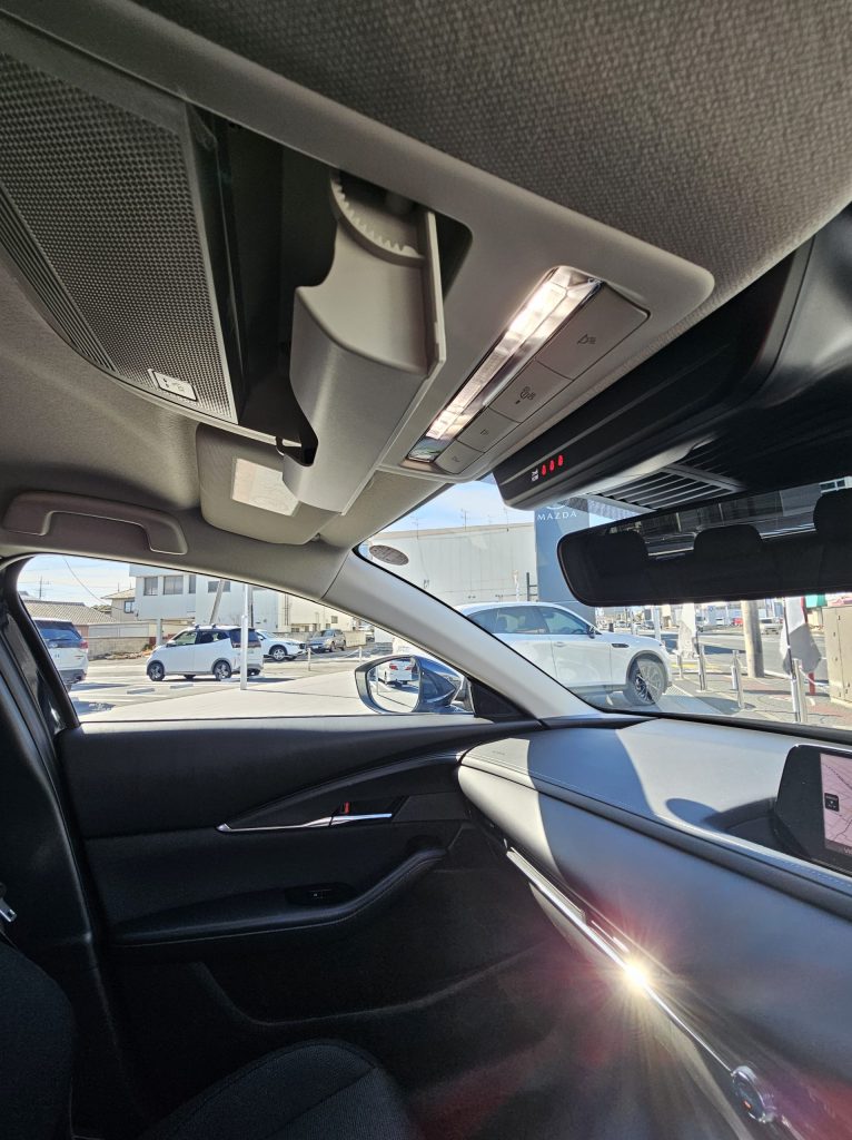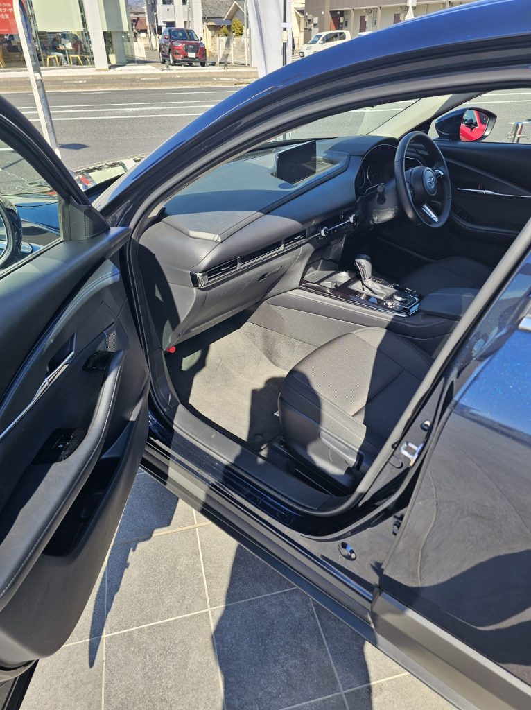 こう見ると窓がちょっと小さく見える。そして全高が低い1540㎜ ちなみに僕が乗っているCX-60の全高は1685㎜だから15㎝ぐらい低いのか・・・うちの奥さんの月ちゃんは車高低い車が好きだからCX-30は購入の候補に入っていたらしい。