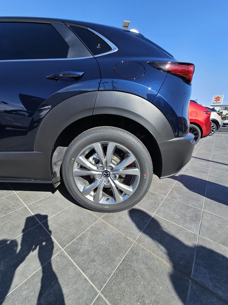個人的には下周りの樹脂部分が好みではない・・・勝手に可愛さはCX-3 カッコよさはCX-30ってイメージがあって(偏見)樹脂は可愛さが出てしまうためもうちょっと幅少な目の方が好みかな。