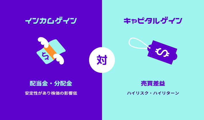 大きく分けると利益の出し方はインカムゲインとキャピタルゲインがあります。